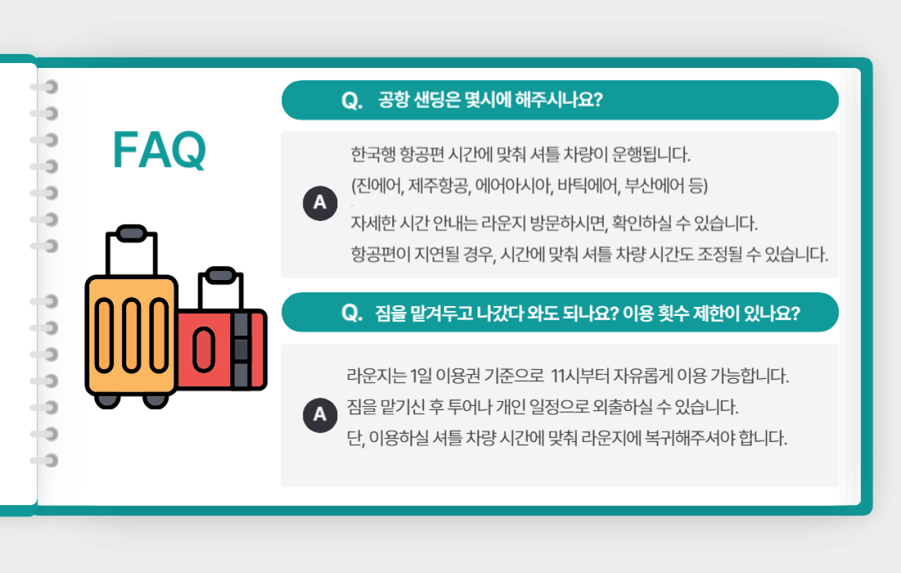 • 공항샌딩 서비스 (항공편에 따라 유동적으로 바뀝니다)